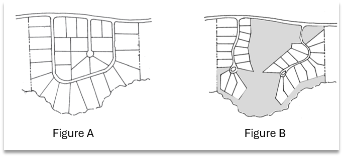 The layout of these homes could be distributed evenly across the 100 acres on 3.3. acre lots (see Figure A, below), or the lot sizes may be smaller (see Figure B, below). Residential density ranges are used to align the development of an area with the anticipated population.